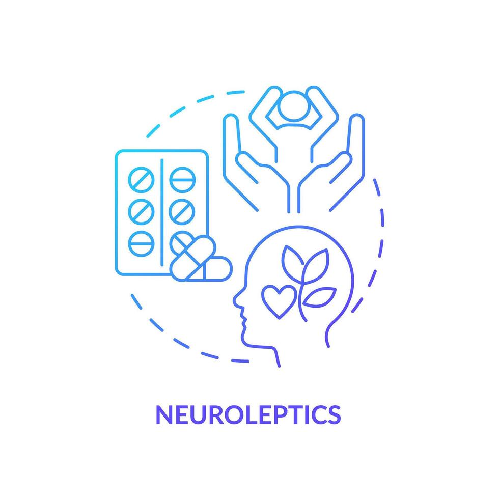 Neuroleptics medication blue gradient concept icon. Antipsychotic medicine. Round shape line illustration. Abstract idea. Graphic design. Easy to use in infographic, presentation, brochure, booklet Pro Vector
