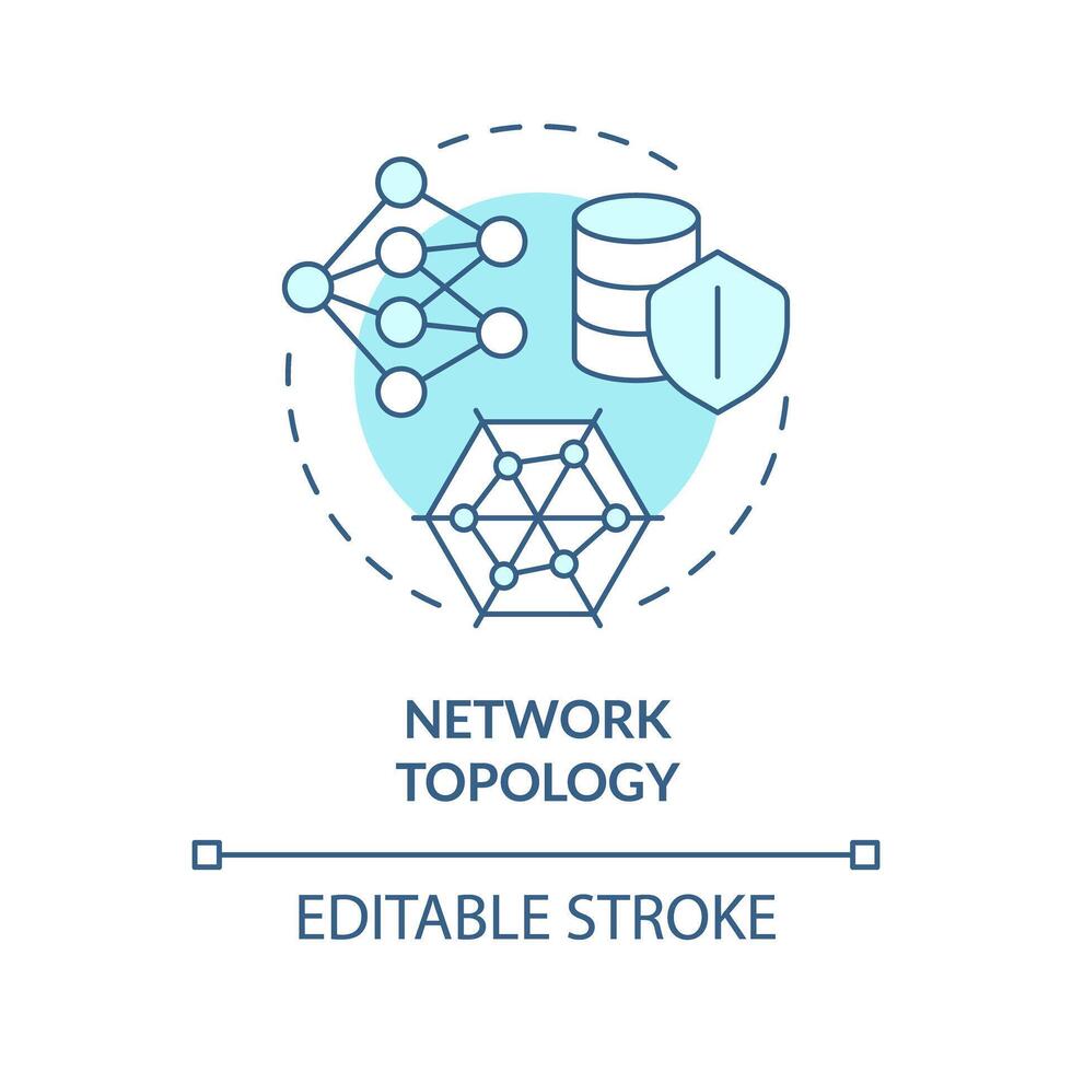 Network topology soft blue concept icon. System structure configuration. Data administration. Efficiency management. Round shape line illustration. Abstract idea. Graphic design. Easy to use Pro Vector