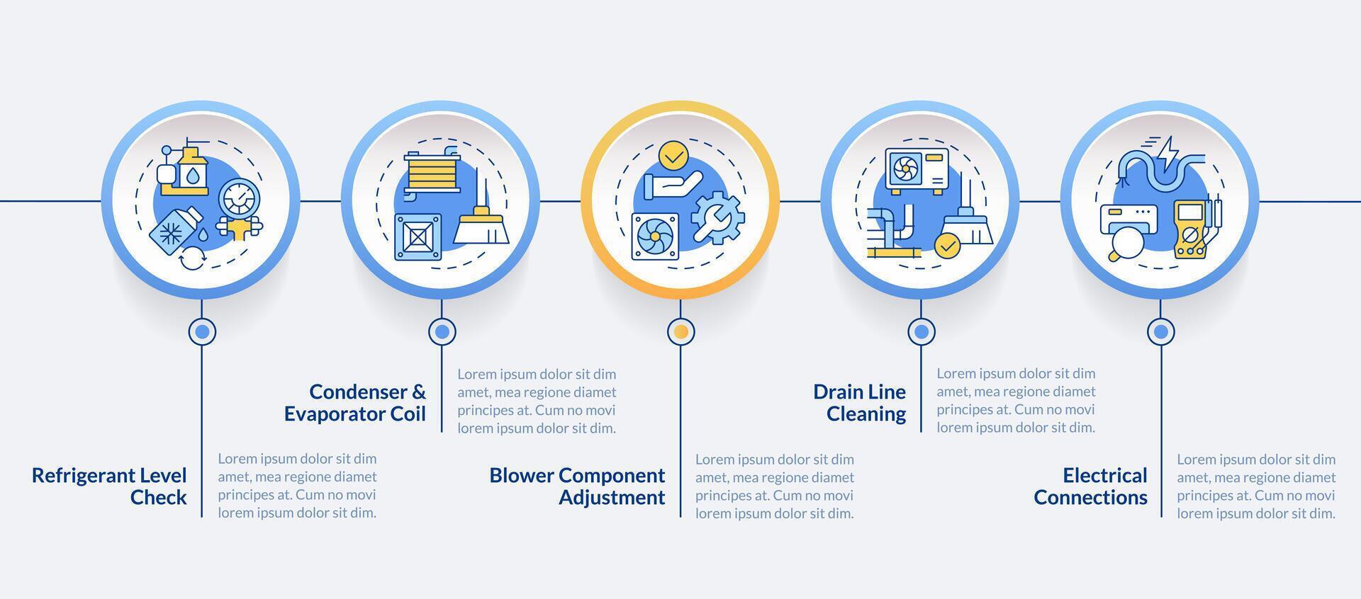 Air conditioning inspection blue circle infographic template. Data visualization with 5 steps. Editable timeline info chart. Workflow layout with line icons Pro Vector