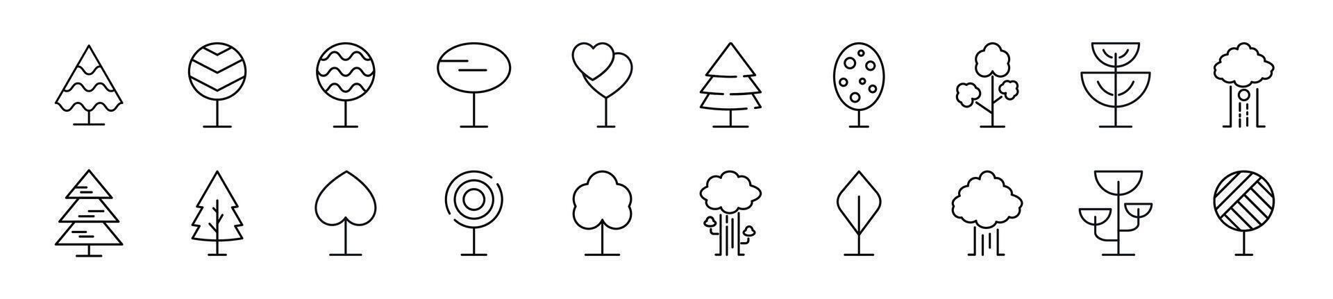 Set of line icons of trees. Editable stroke. Simple outline sign for web sites, newspapers, articles book Pro Vector