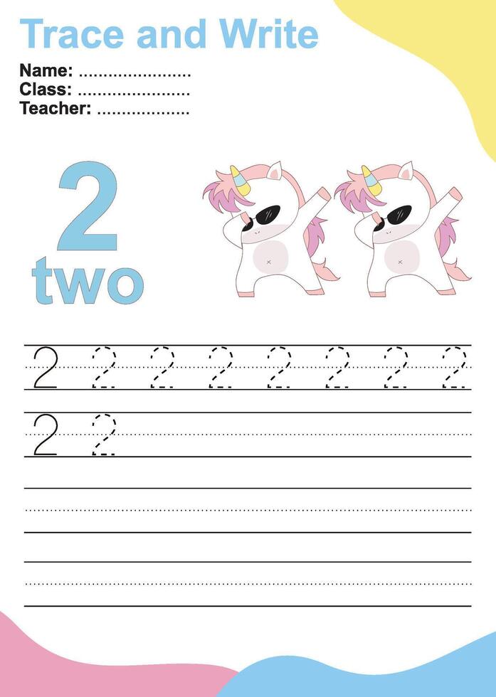 Trace and write number for children. Exercise for children to recognize the number. Pro Vector