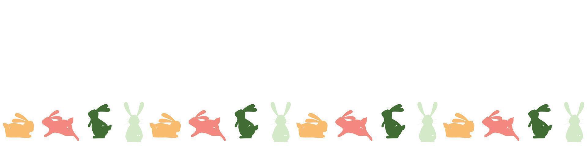 Easter Bunny Silhouette Seamless Pattern. Long horizontal seamless pattern with coloured bunnies on the bottom Pro Vector