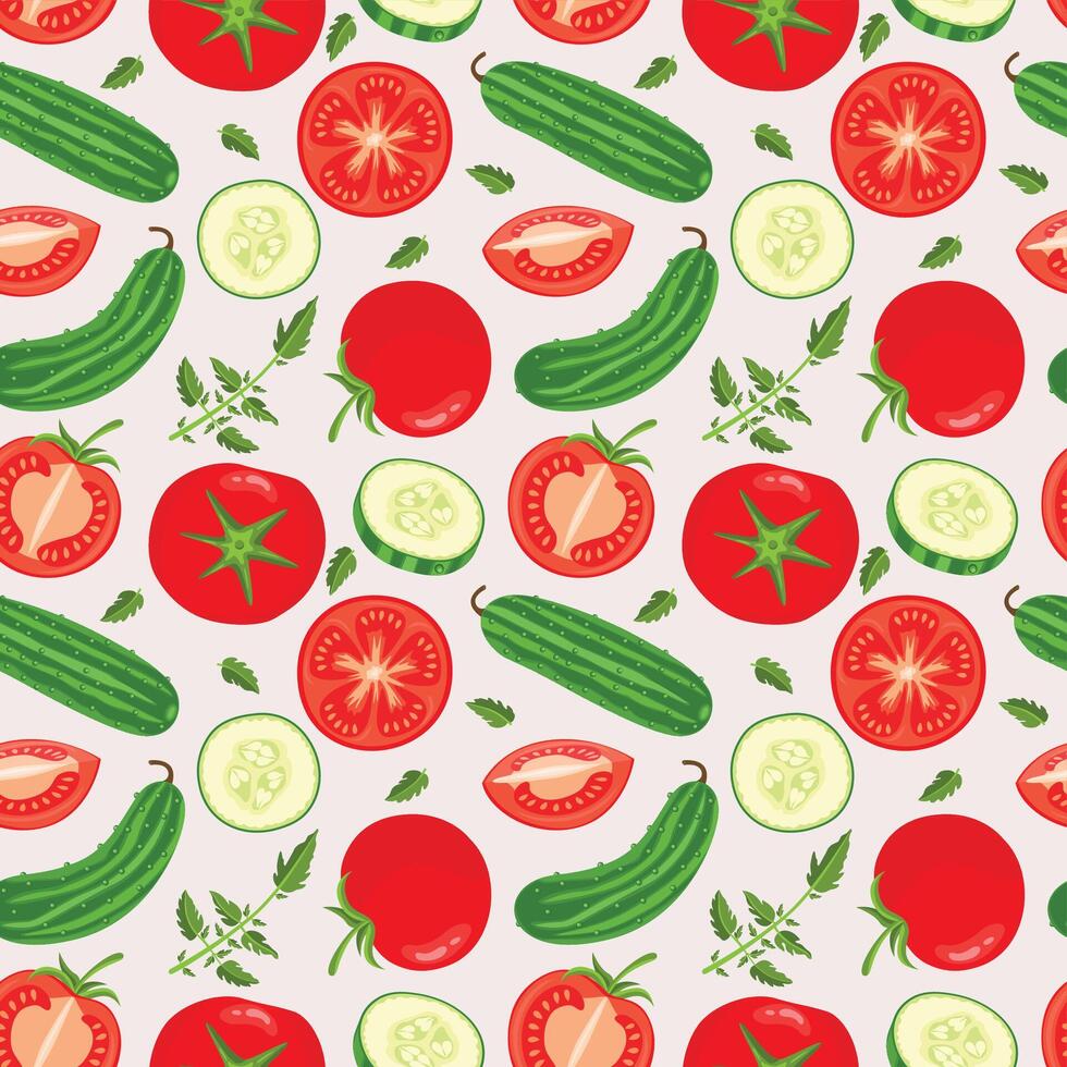 Seamless pattern background with with tomatoes and cucumbers Pro Vector