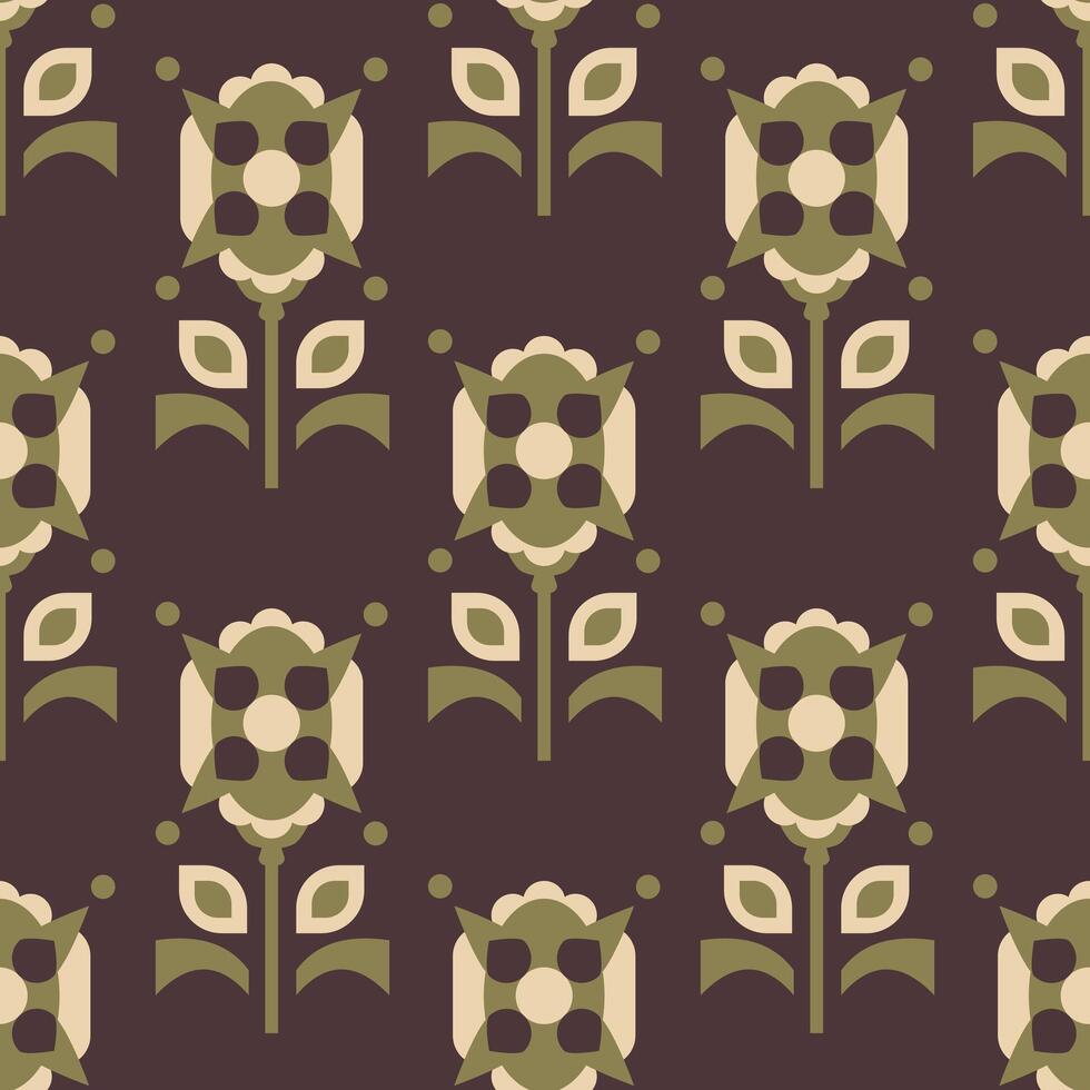 seamless pattern with abstract geometric flowers on a brown background Pro Vector