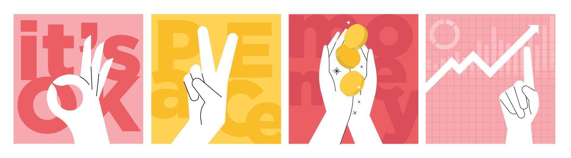 Hand gestures. Vector illustrations of communication, expression of opinion, social network signs. Creative concepts for graphic and web design, social media banner, business presentation, marketing. Pro Vector