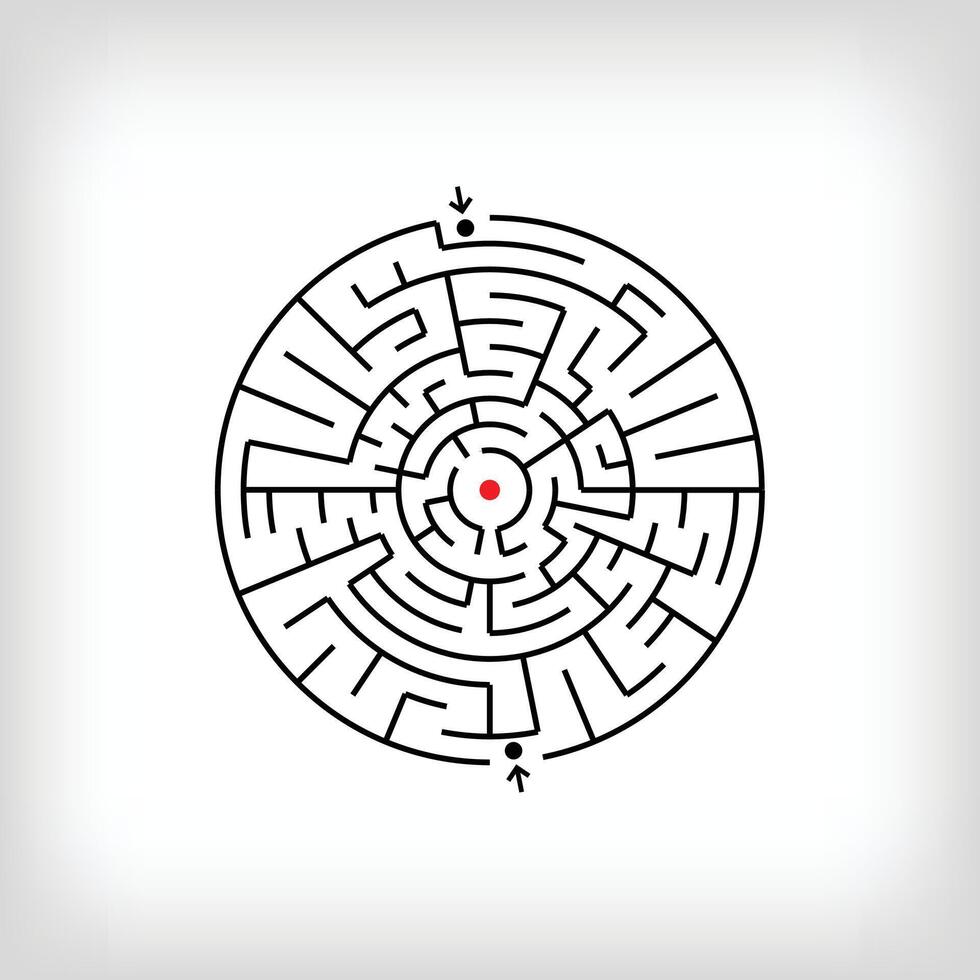Mixed round and two-entrance maze puzzle. Confusing game and educational activity set. Pro Vector