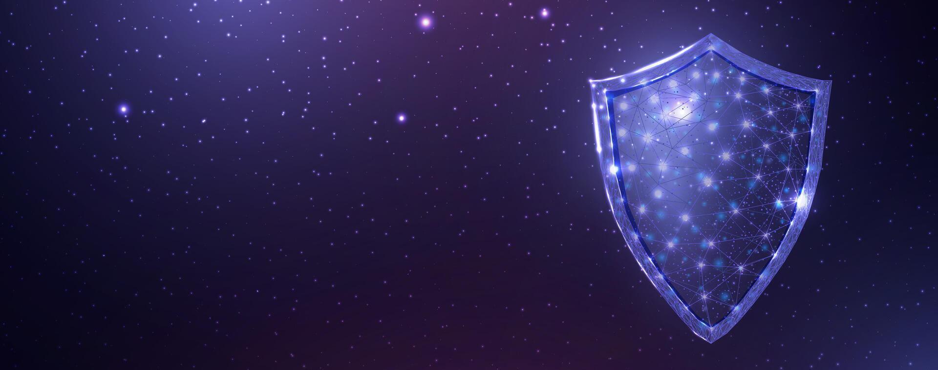 Guard shield. Cyber security concept with glowing wireframe low poly shield. Abstract futuristic vector illustration. Pro Vector