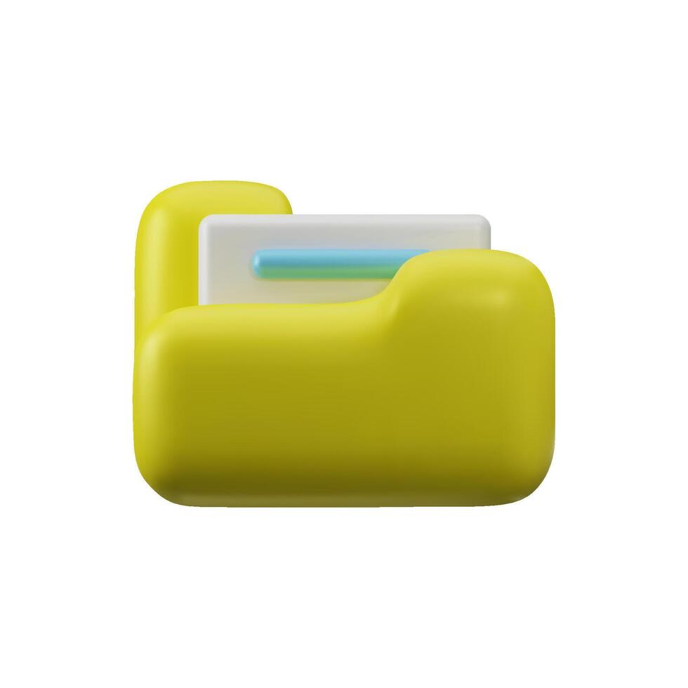 Glossy plastic yellow 3d folder . Cute minimalistic style for the interface of applications and web pages on white background. Business document, file, web explorer concept icon. Vector illustration Pro Vector