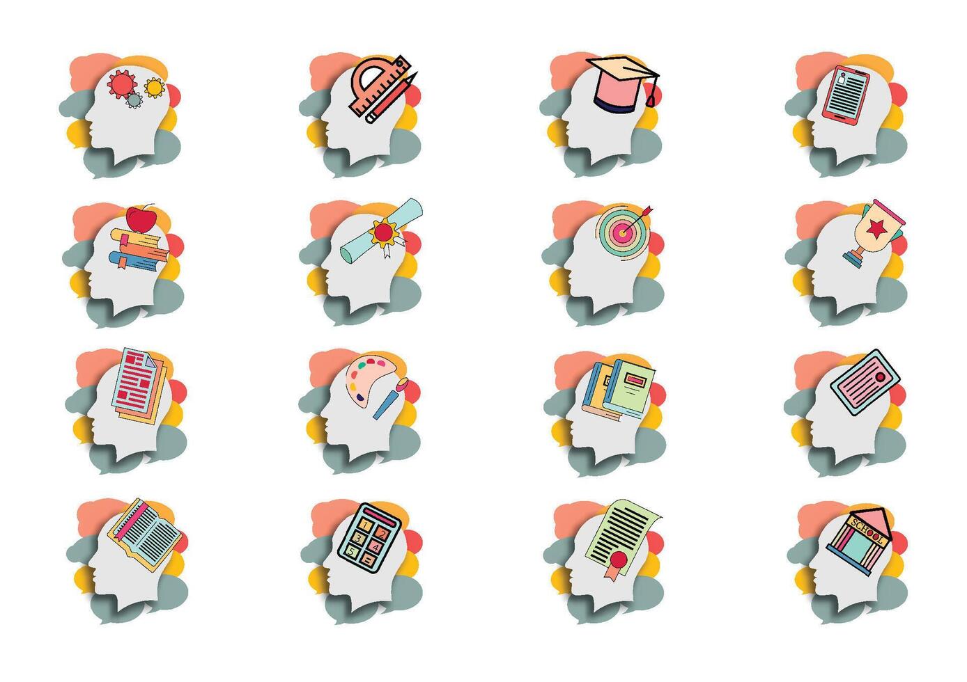 Brain and think icons set.mind or intelligence thin line style stock vector.think,iq,data,idea. Pro Vector