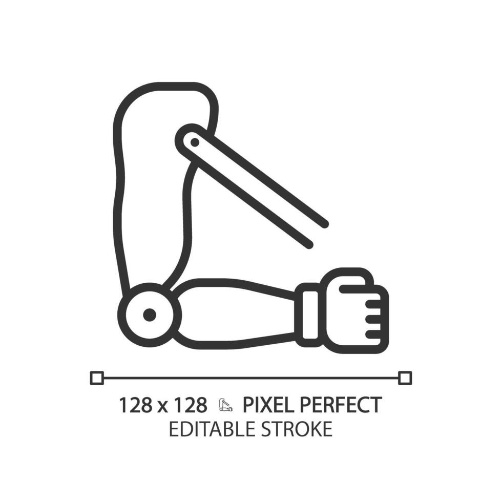 Transhumeral prosthetic arm linear icon. Biomedical engineering, bionic. Robotic technology. Bionic exoskeleton. Thin line illustration. Contour symbol. Vector outline drawing. Editable stroke Pro Vector