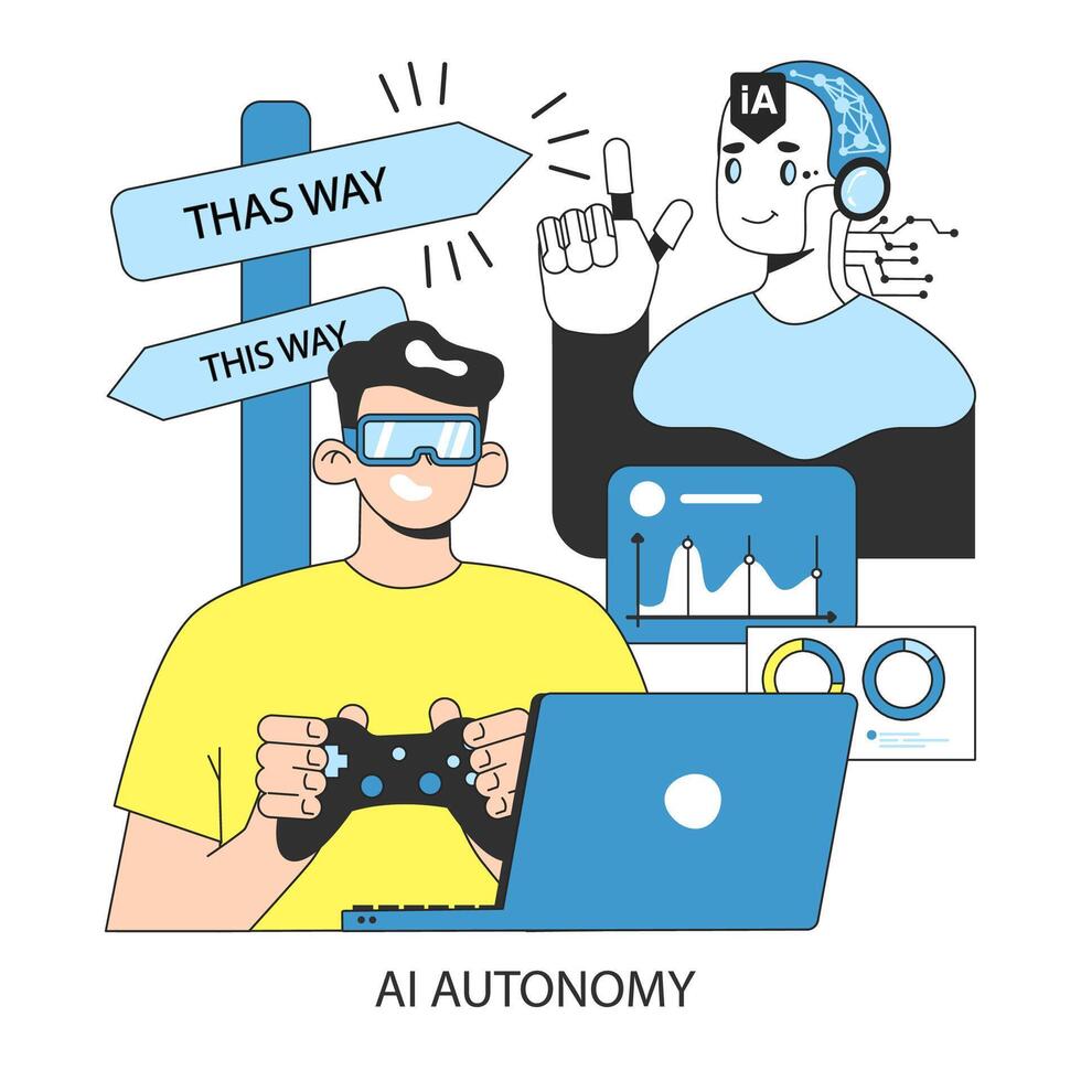 AI ethics. Artificial intelligence autonomy juxtaposed hardware control Pro Vector