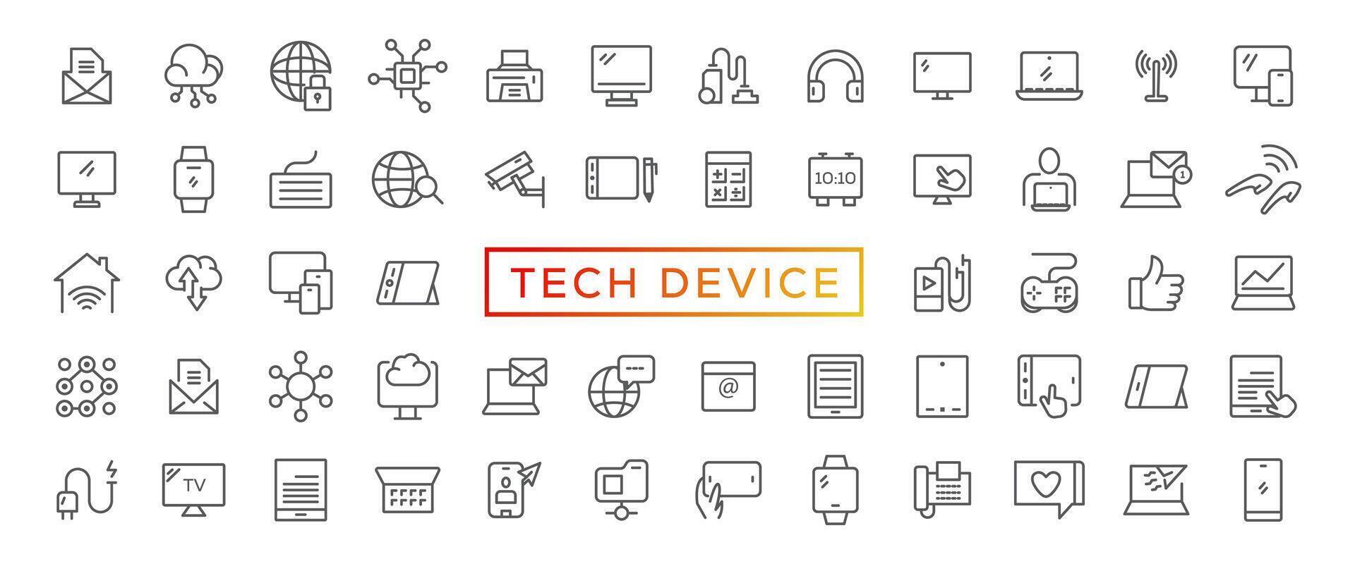 Tech Device thin lines Flat Icon Solid style,isolated Simple Communication icon set,easy to change colour and size,Device and technology web Icon in Vector Format Pro Vector