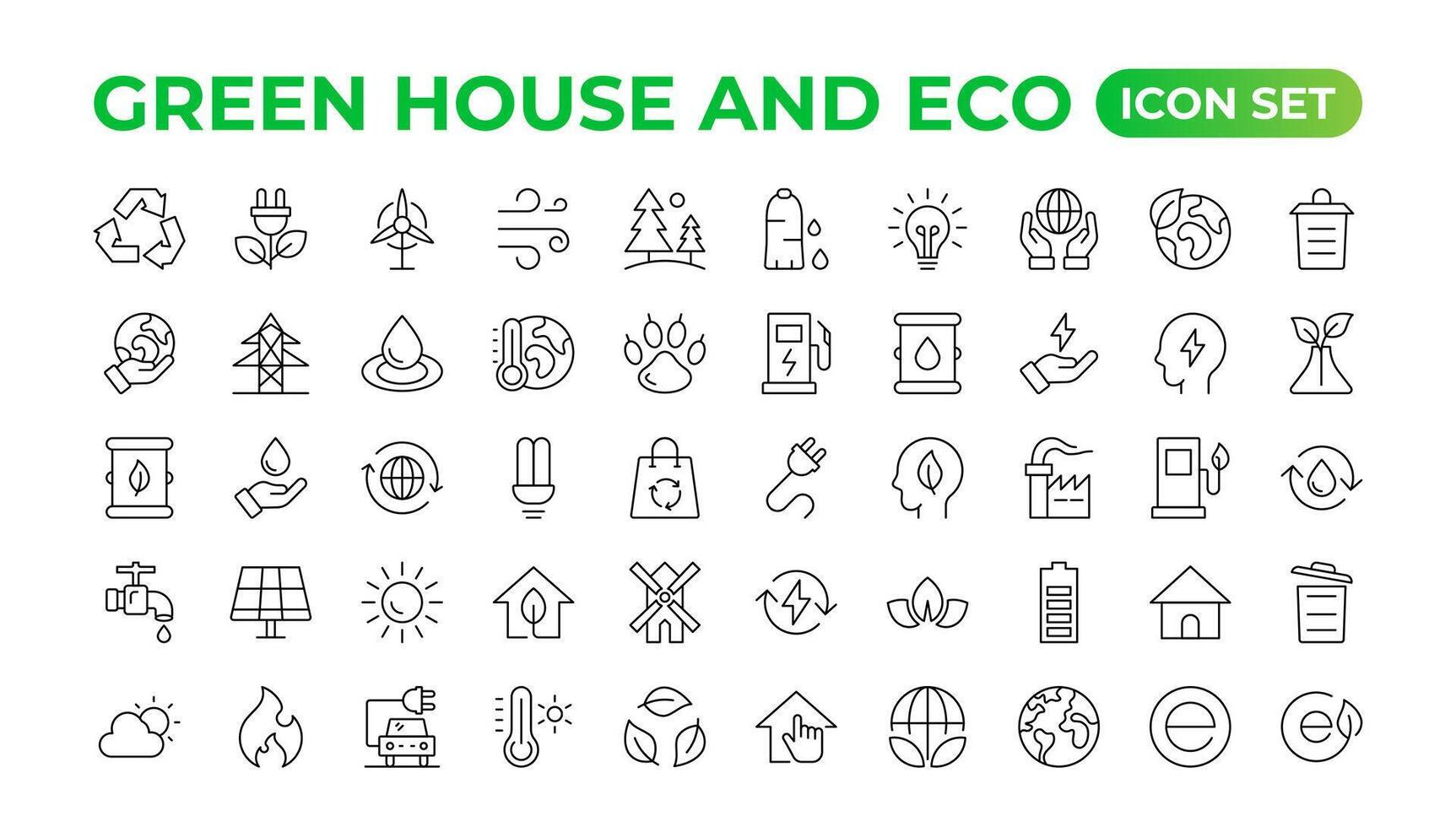Eco-friendly related thin line icon set in minimal style. Linear ecology icons. Environmental sustainability simple symbol. Simple Set of Line Icons.Global Warming, Forests, Organic Farming. Pro Vector