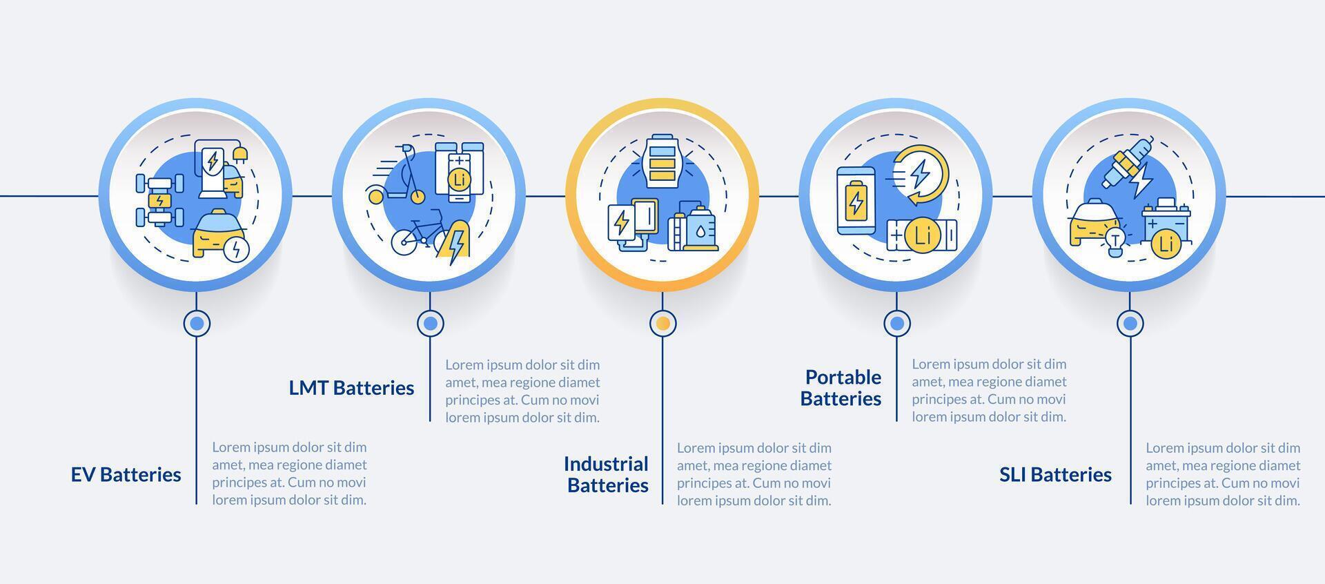 Battery modern technology circle infographic template. Energy storages. Data visualization with 5 steps. Editable timeline info chart. Workflow layout with line icons Pro Vector