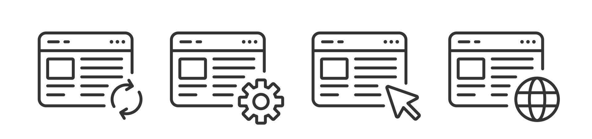 Browser icon. Website interface vector. Web site setting, search, reload, global. Pro Vector