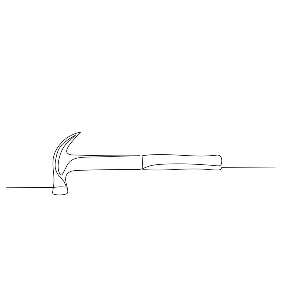 Continuous line drawing of a hammer tool. Simple flat hand drawn style vector for tool in engineering and construction Pro Vector