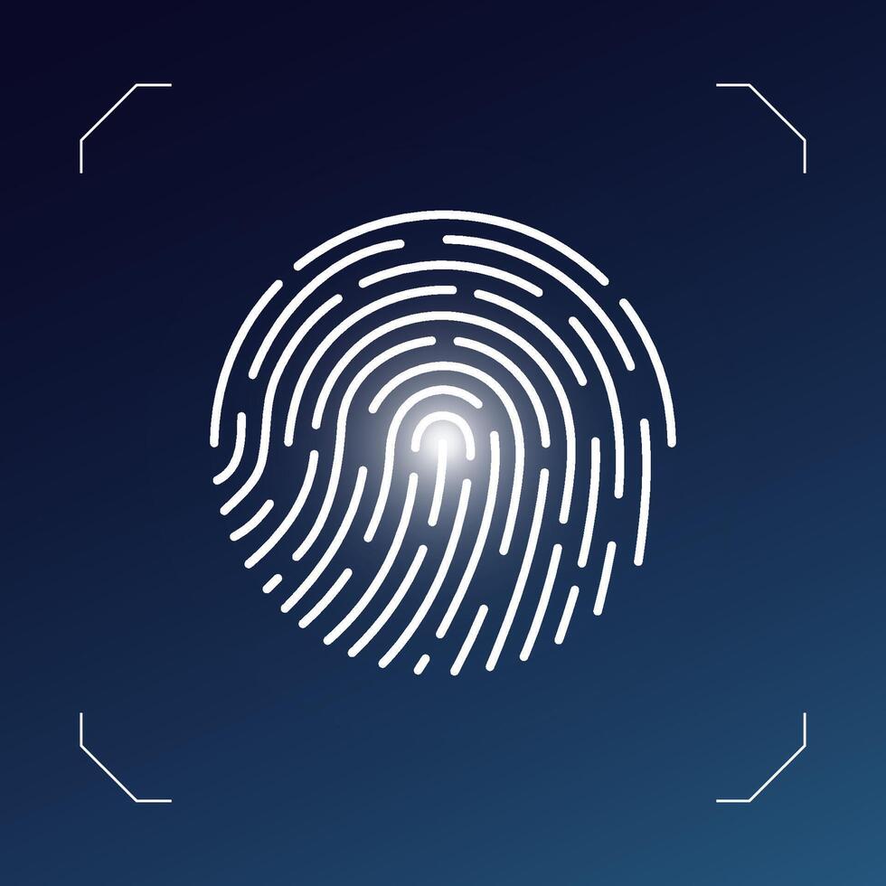 User finger scan icon. Fingerprint touch biometric id symbol. Modern account thumbprint identification security sign. User recognition scanner badge. Glowing linear vector eps logo Pro Vector