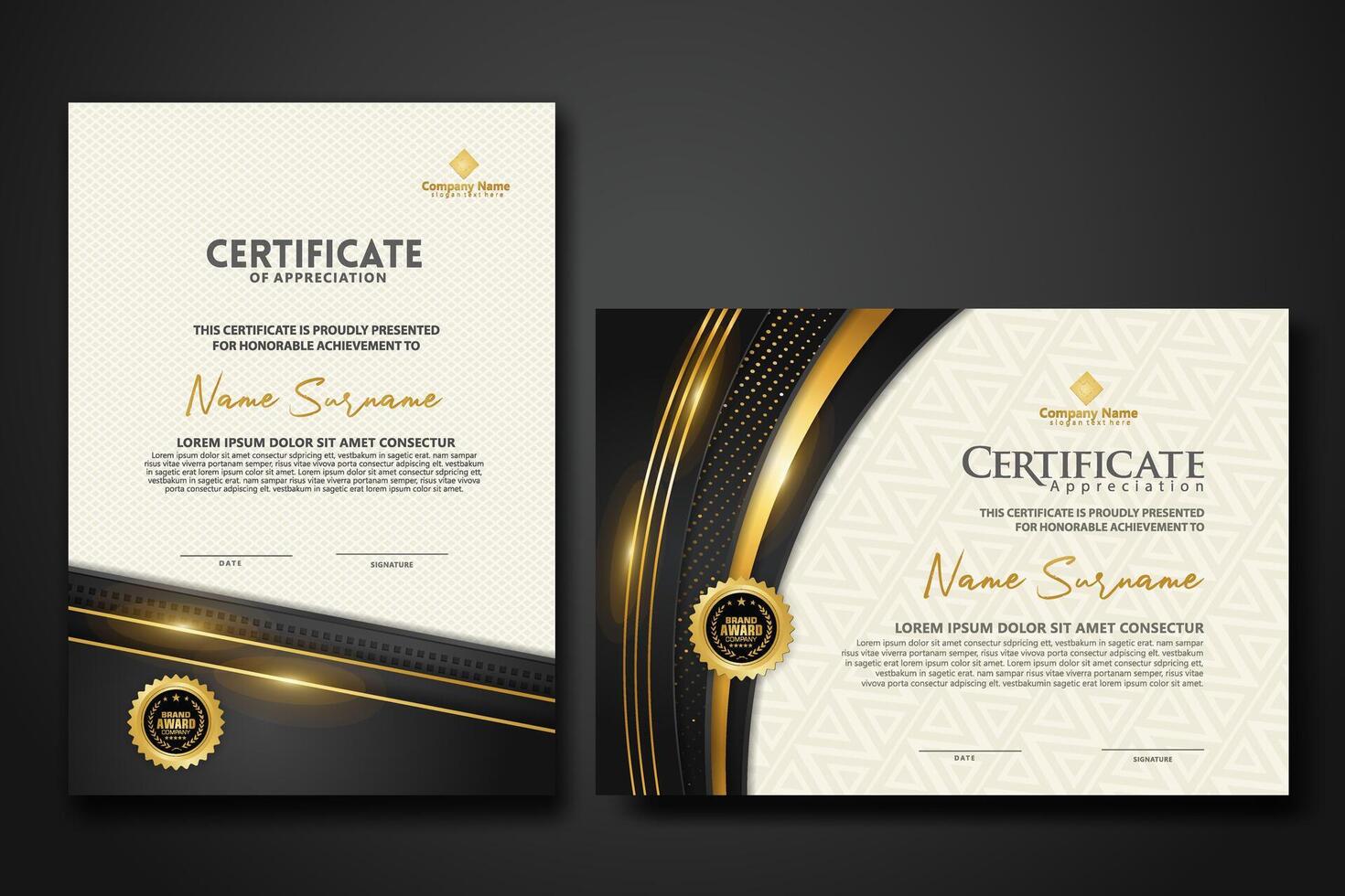 Luxury certificate template with glitter effect dan lines gold shine on frame background Pro Vector