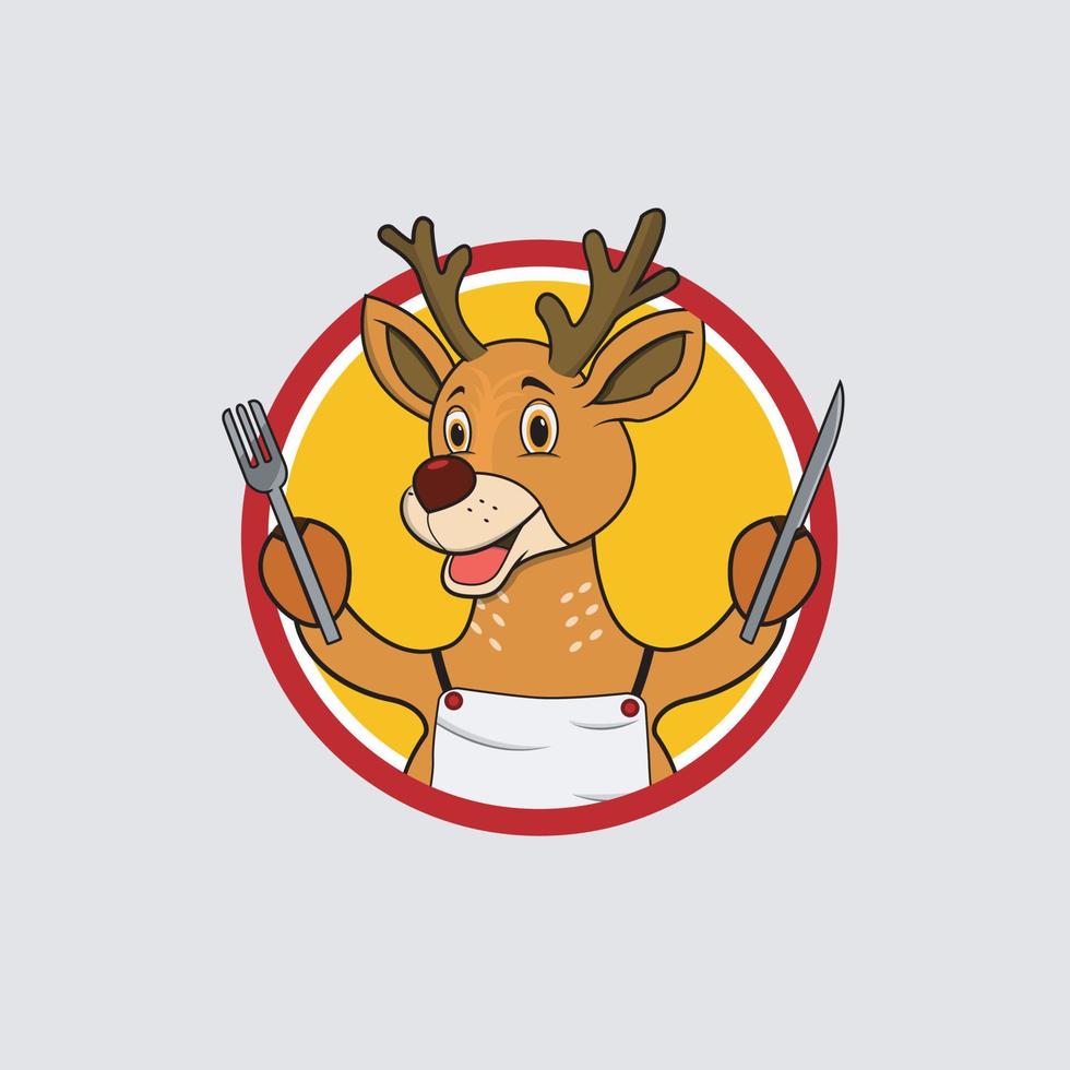Deer Head Circle Label With Chef Custom and Bring Knife and Fork Pro Vector