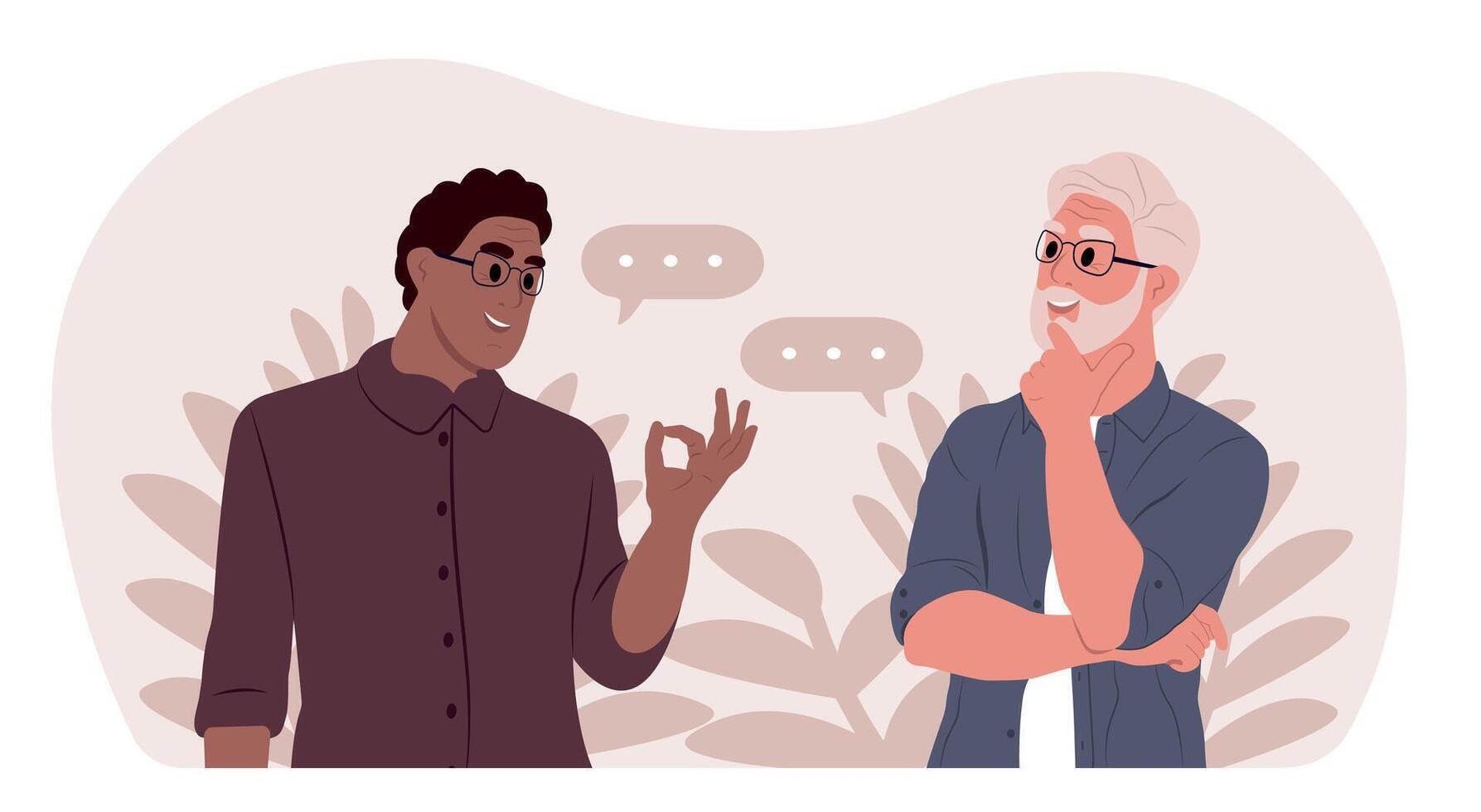 Mans in the office are having a dialogue. Colleagues discuss work on a joint project. illustration with white background. Pro Vector