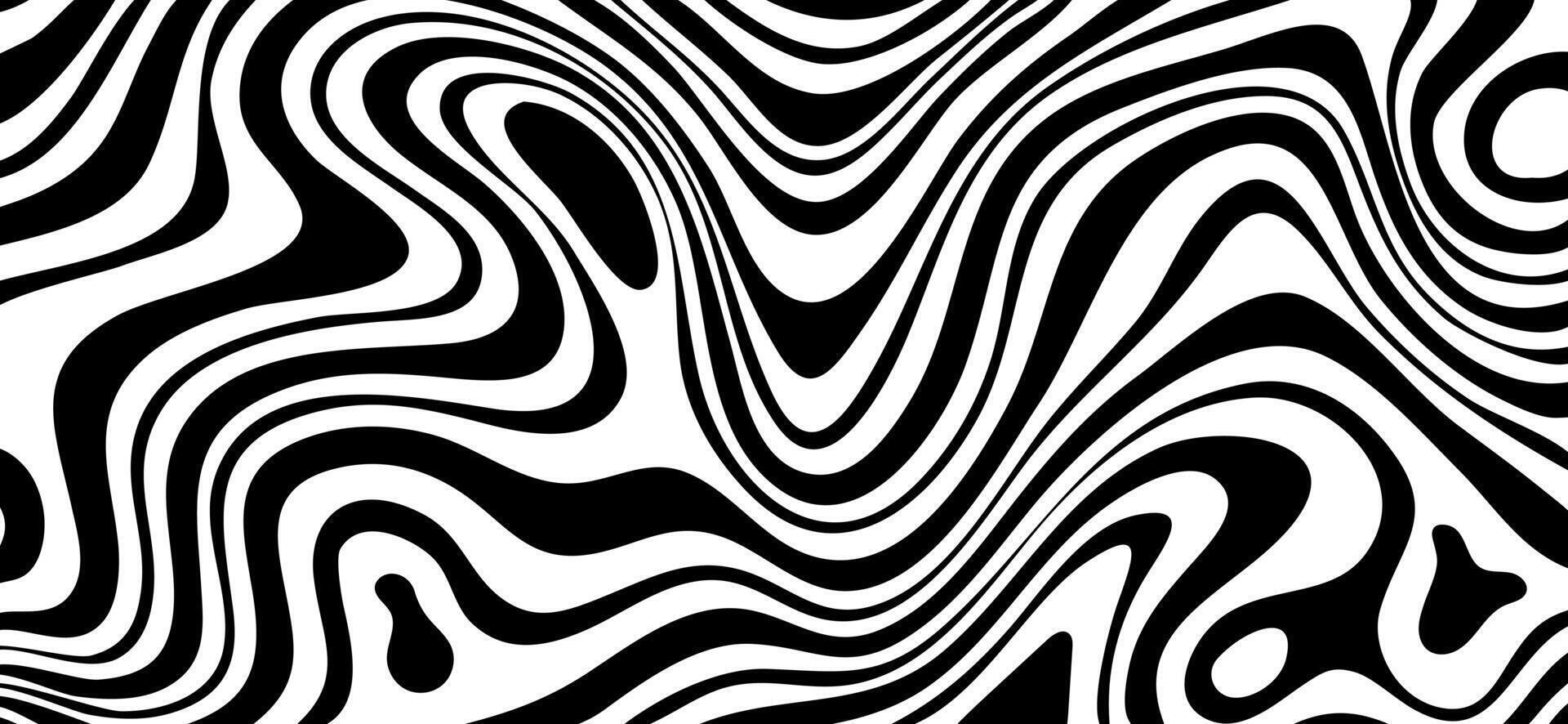 Black white zebra background. Wave psychedelic pattern in dynamics. Monochrome dynamic wallpaper. Pro Vector