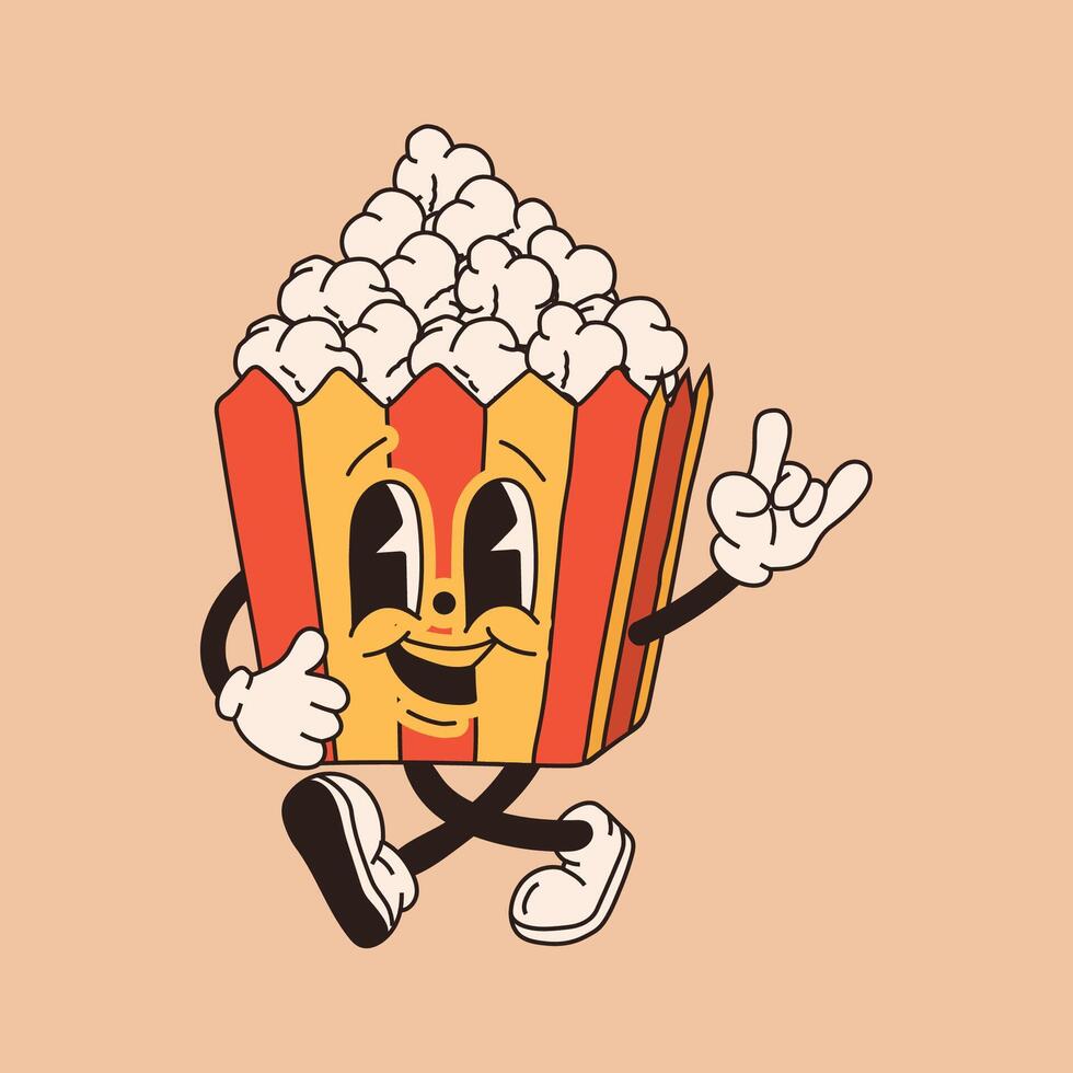 Charming cartoon popcorn figure, reminiscent of classic animations from the 60s and 70s, featuring amusing characters. Pro Vector
