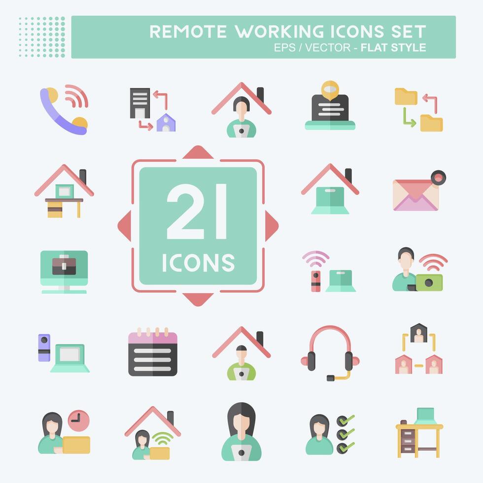 Icon Set Remote Working. related to Technology symbol. flat style. simple design illustration Pro Vector
