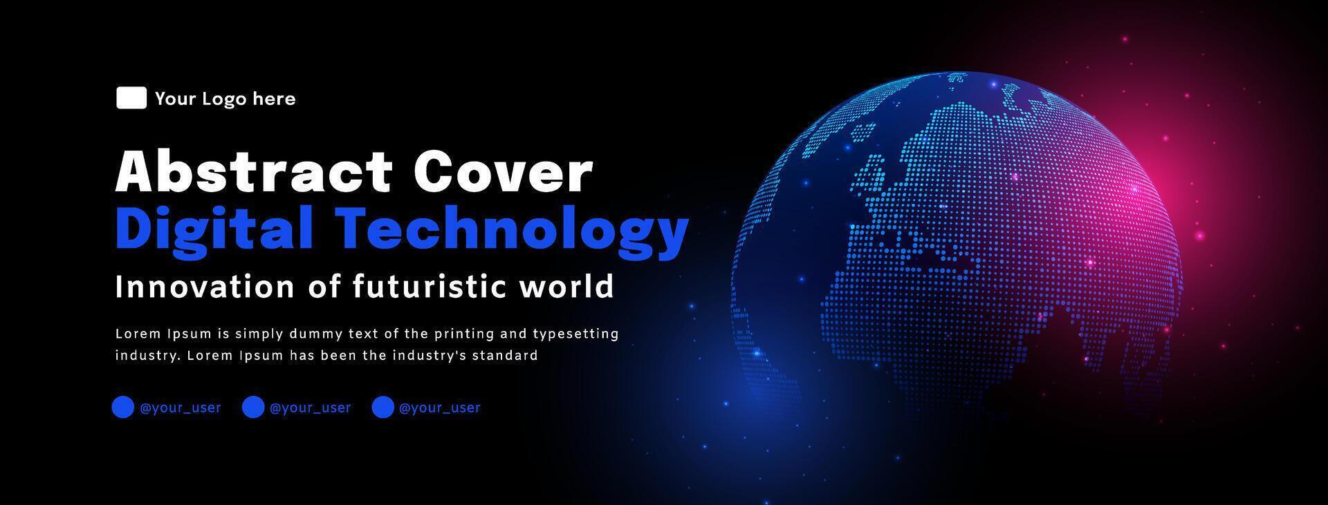 Digital technology poster cover, World map space blue background, cyber information, abstract communication, innovation future tech data, internet network connection, Ai big data, illustration Pro Vector