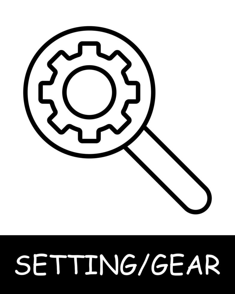 Loupe, magnifying glass icon. Gear, search, tuning, offer users the ability to customize their experience on the platform. Assistance in adjustments and optimization. Pro Vector