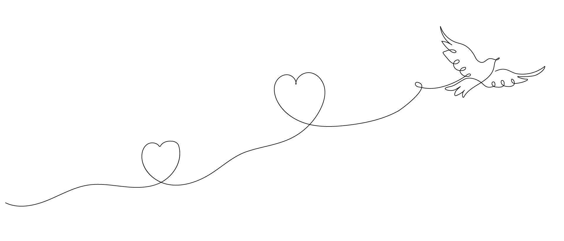 One continuous line drawing of a flying pigeon, background. Bird symbol of peace and freedom in simple linear style. Free Vector