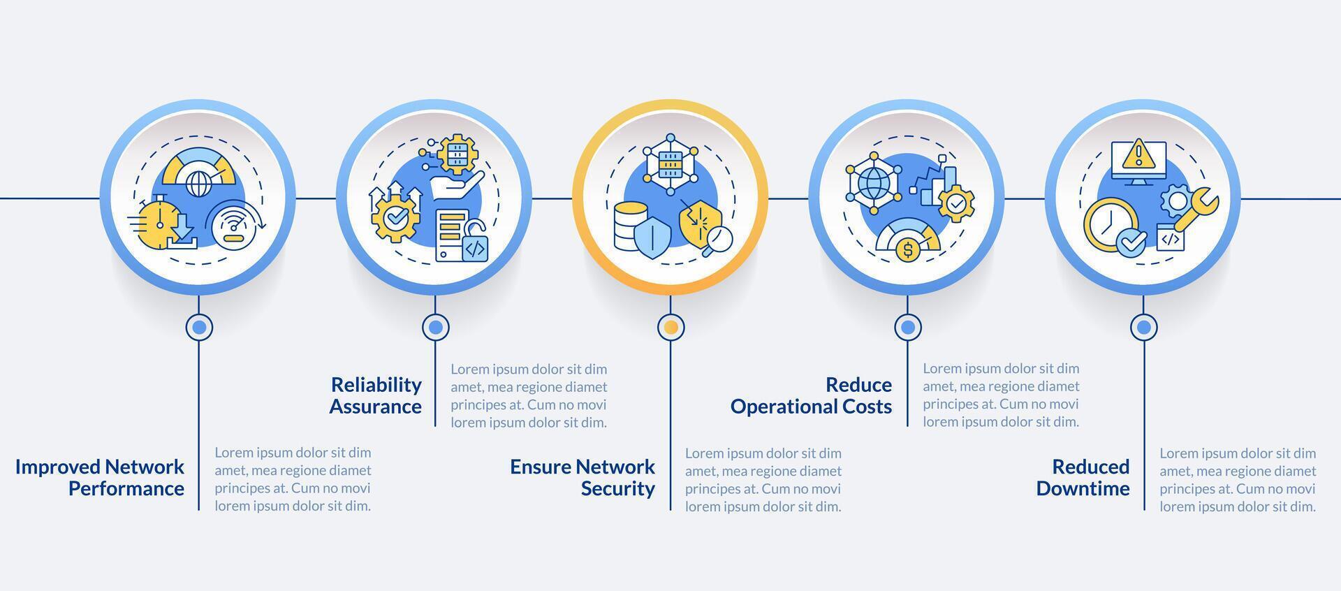 Network management benefits circle infographic template. Data visualization with 5 steps. Editable timeline info chart. Workflow layout with line icons Pro Vector