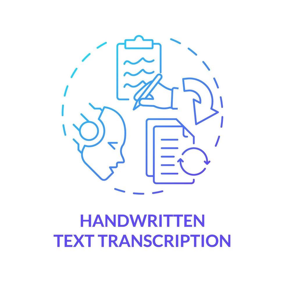 Handwritten text transcription blue gradient concept icon. Optical character recognition. Round shape line illustration. Abstract idea. Graphic design. Easy to use in infographic, presentation Pro Vector