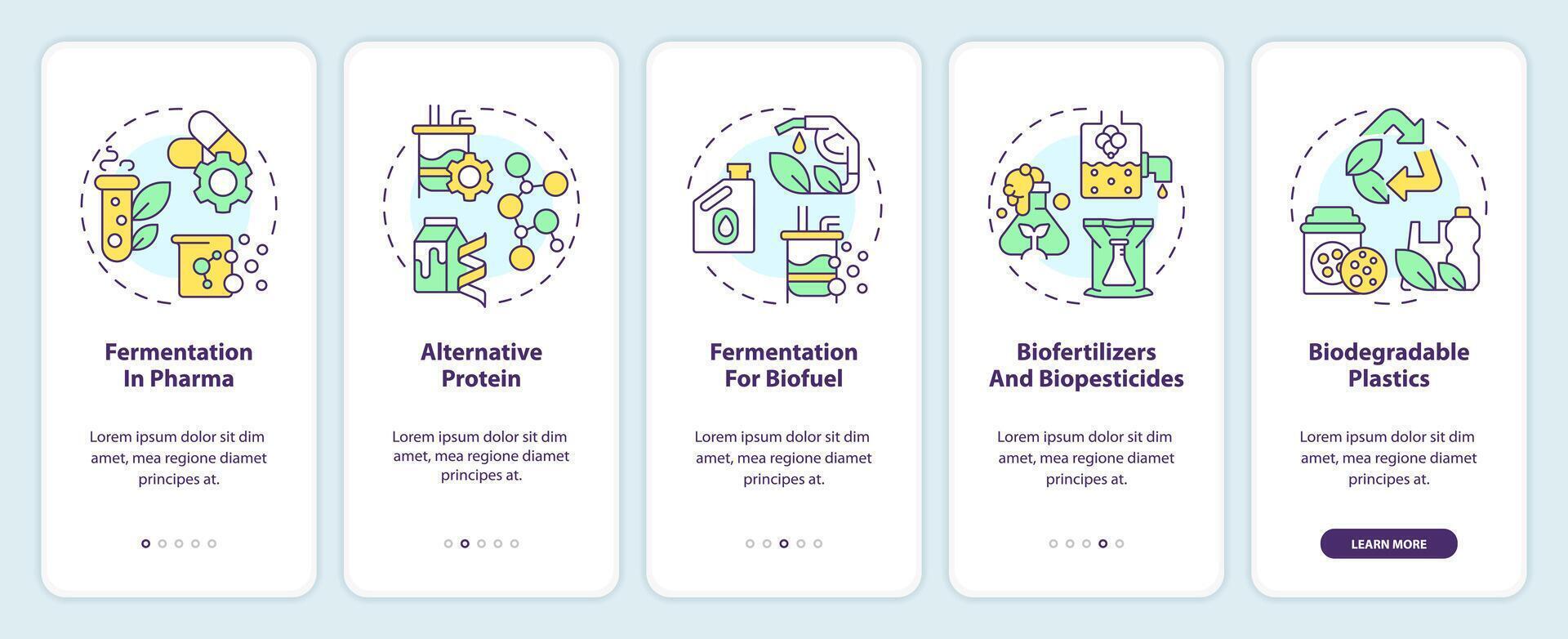 Precision fermentation applications onboarding mobile app screen. Walkthrough 5 steps editable graphic instructions with linear concepts. UI, UX, GUI template Pro Vector