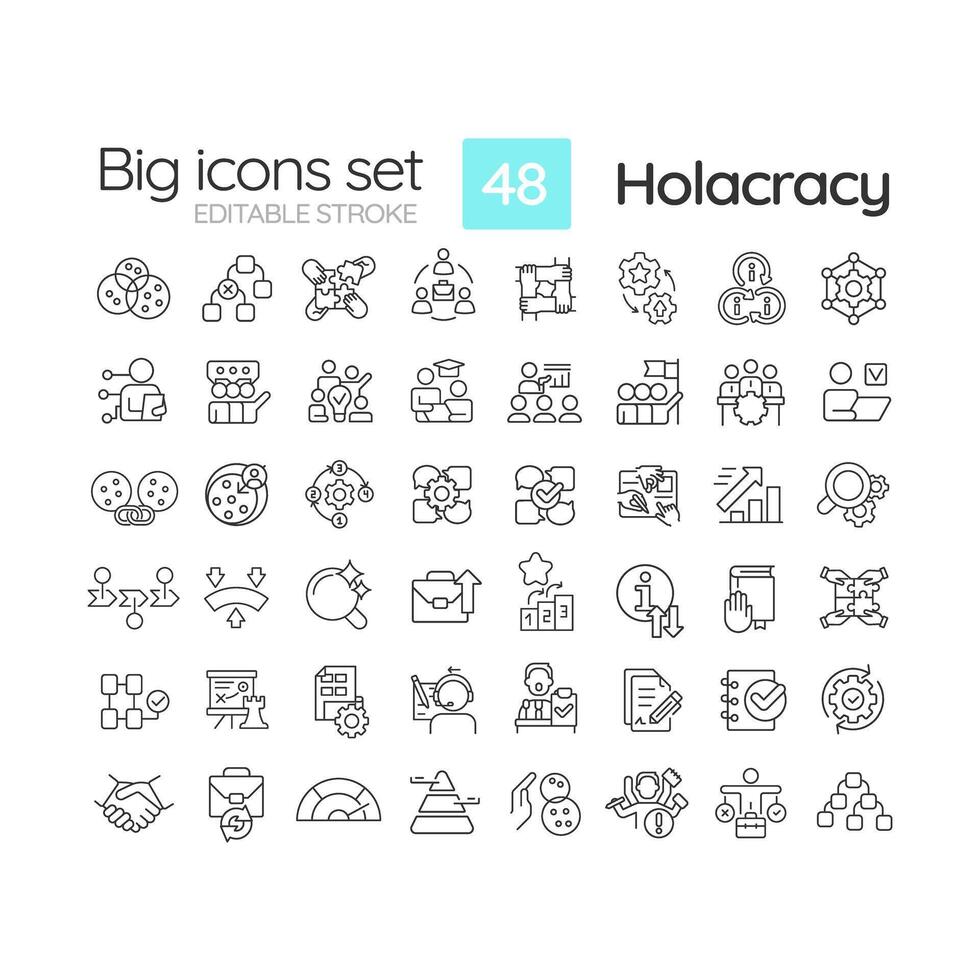 Holacracy structure linear icons set. Power distribution. Operational process. Governance meetings. Customizable thin line symbols. Isolated outline illustrations. Editable stroke Pro Vector