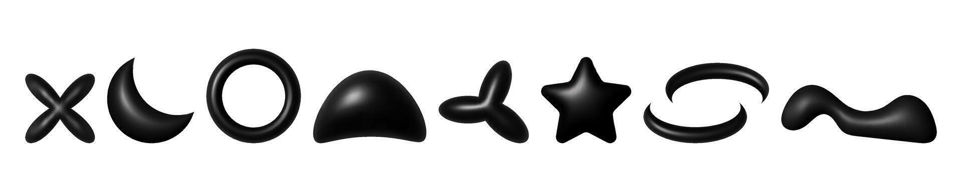 3D Chrome abstract liquid shapes. set of black metal element in y2k style. Pro Vector
