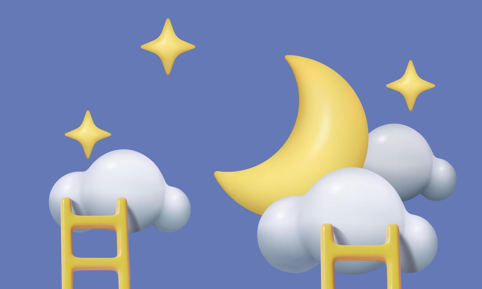 3d realistic ladders in the sky with clouds moon and stars three dimensional climbing up to dream Pro Vector