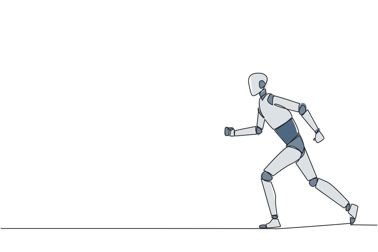 Single one line drawing smart robotic doing light exercise. Running aims to maintain heart health. The robot with healthy life style. Good mental. AI tech. Continuous line design graphic illustration Pro Vector