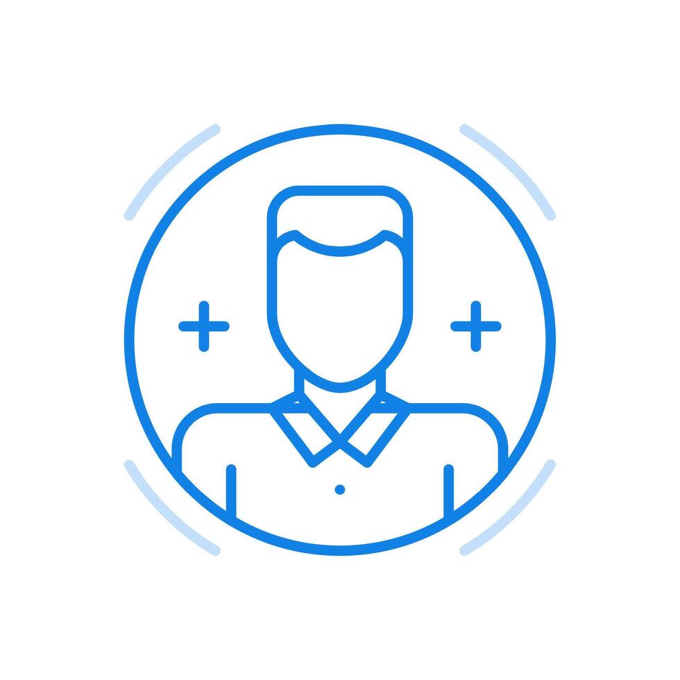 Custom avatar line icon. Social web portrait of character in circle. Pro Vector