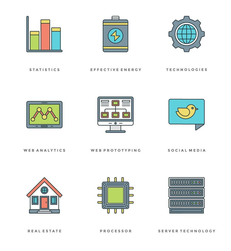 Flat line simple icons set. Thin linear stroke Essentials objects symbols Pro Vector