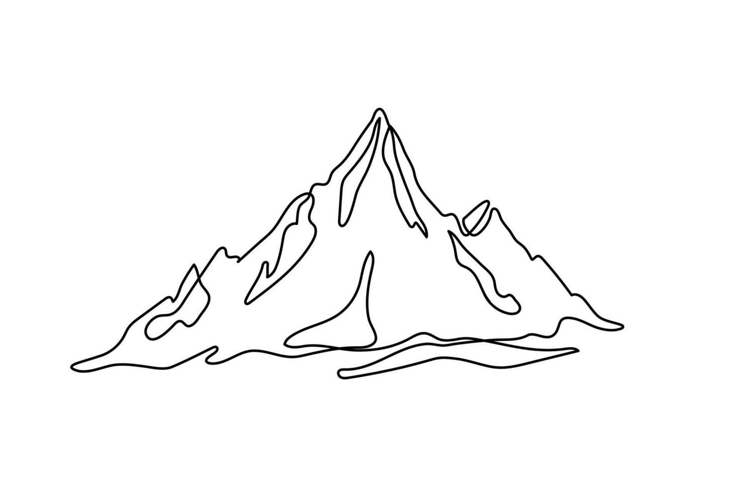 One solid line drawing of a mountain range landscape on a white background. Web banner with fasteners in simple linear style. Doodle illustration of mountains nature Pro Vector