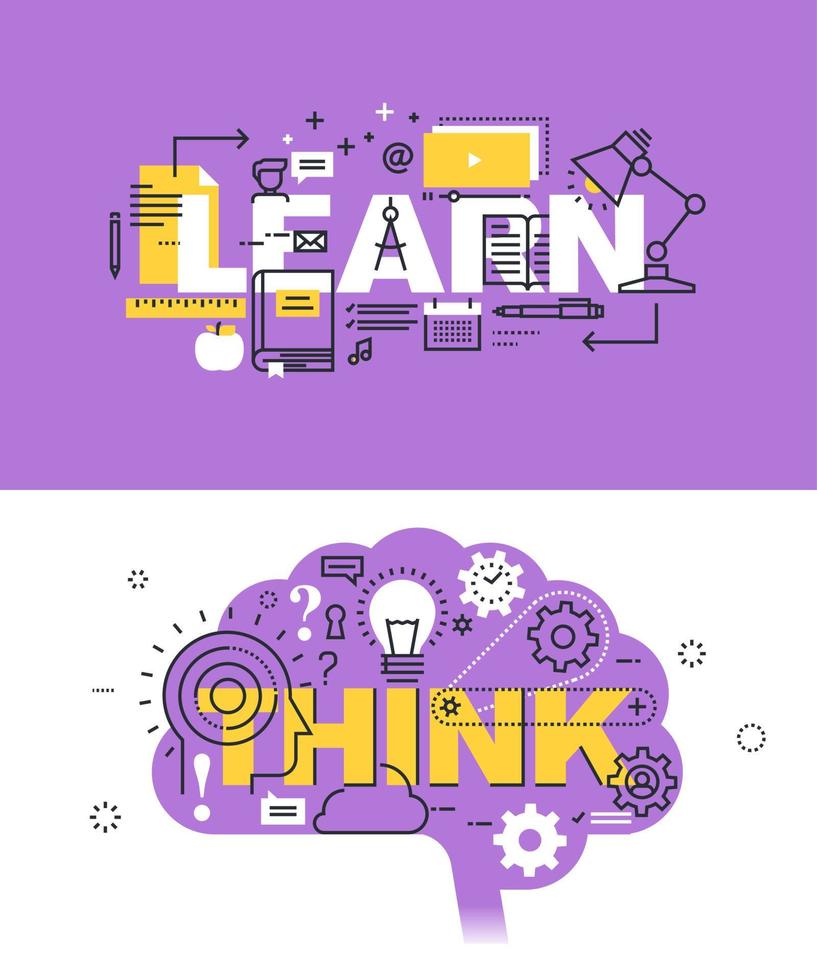 Set of modern vector illustration concepts of words learn and think Pro Vector