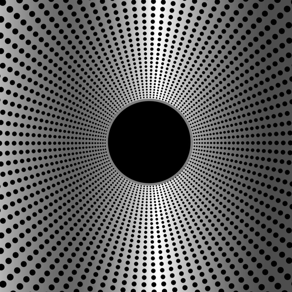 Abstract metal background with a geometric pattern in the form of small holes and dots arranged in a circle Pro Vector