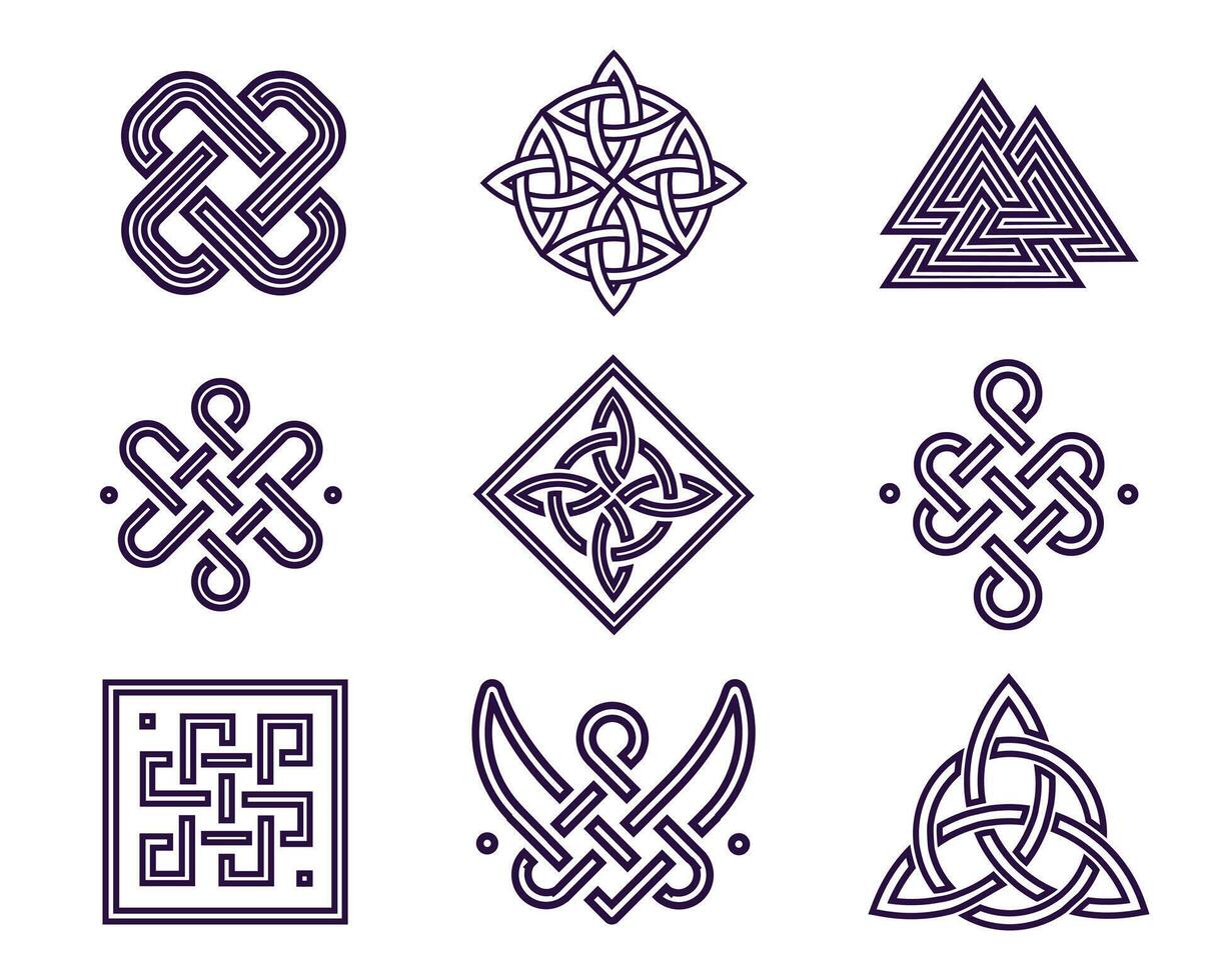 Set of abstract icons with weaves and knots. Celtic patterns and symbols Pro Vector