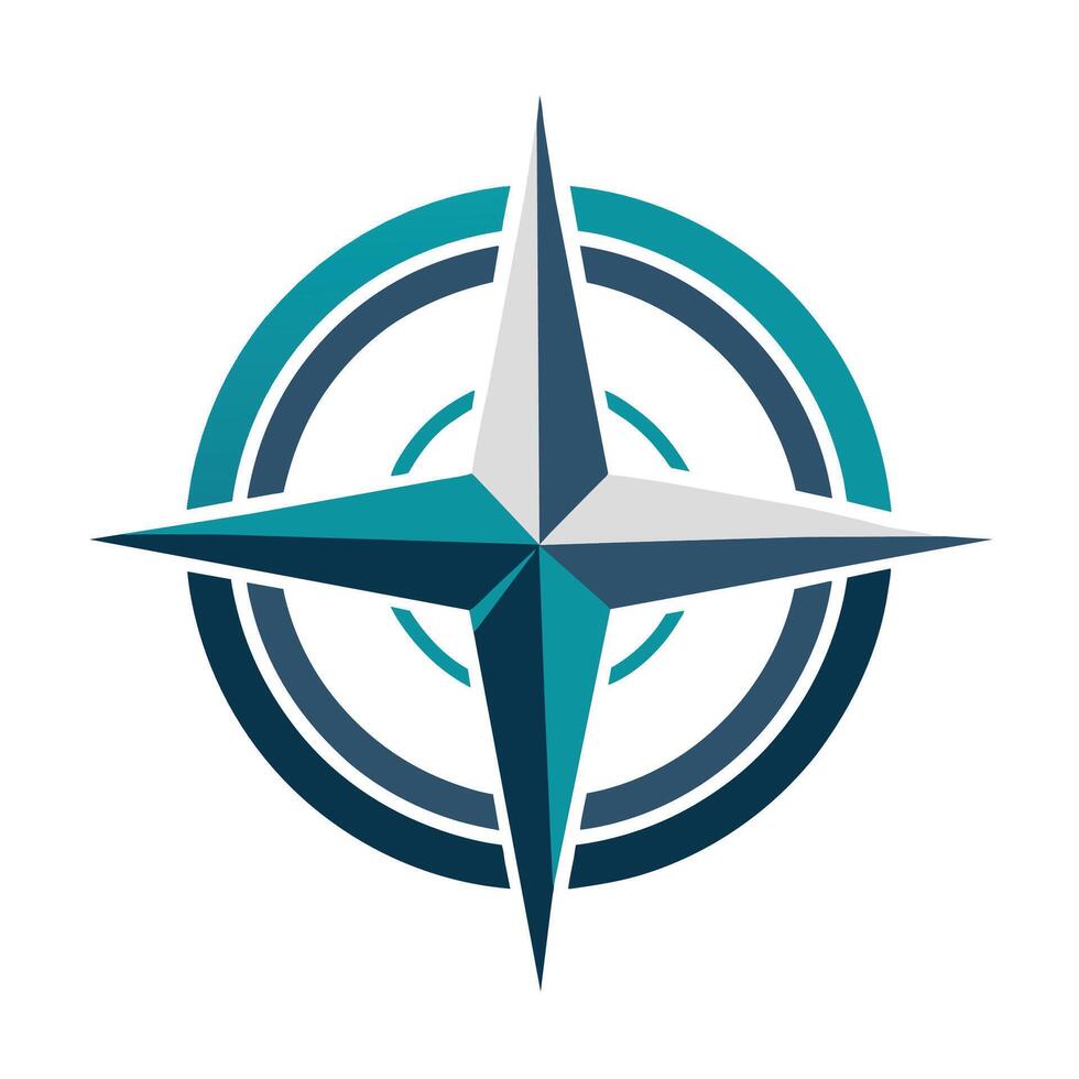 Blue and white compass standing on a plain white surface, An abstract interpretation of a compass with streamlined typography vector