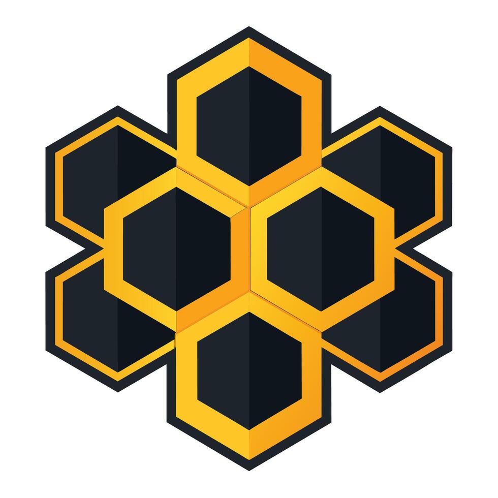 A cluster of sleek black and yellow hexagonals creating a modern and geometric pattern, A sleek and modern interpretation of honeycomb patterns, minimalist simple modern logo design Free Vector