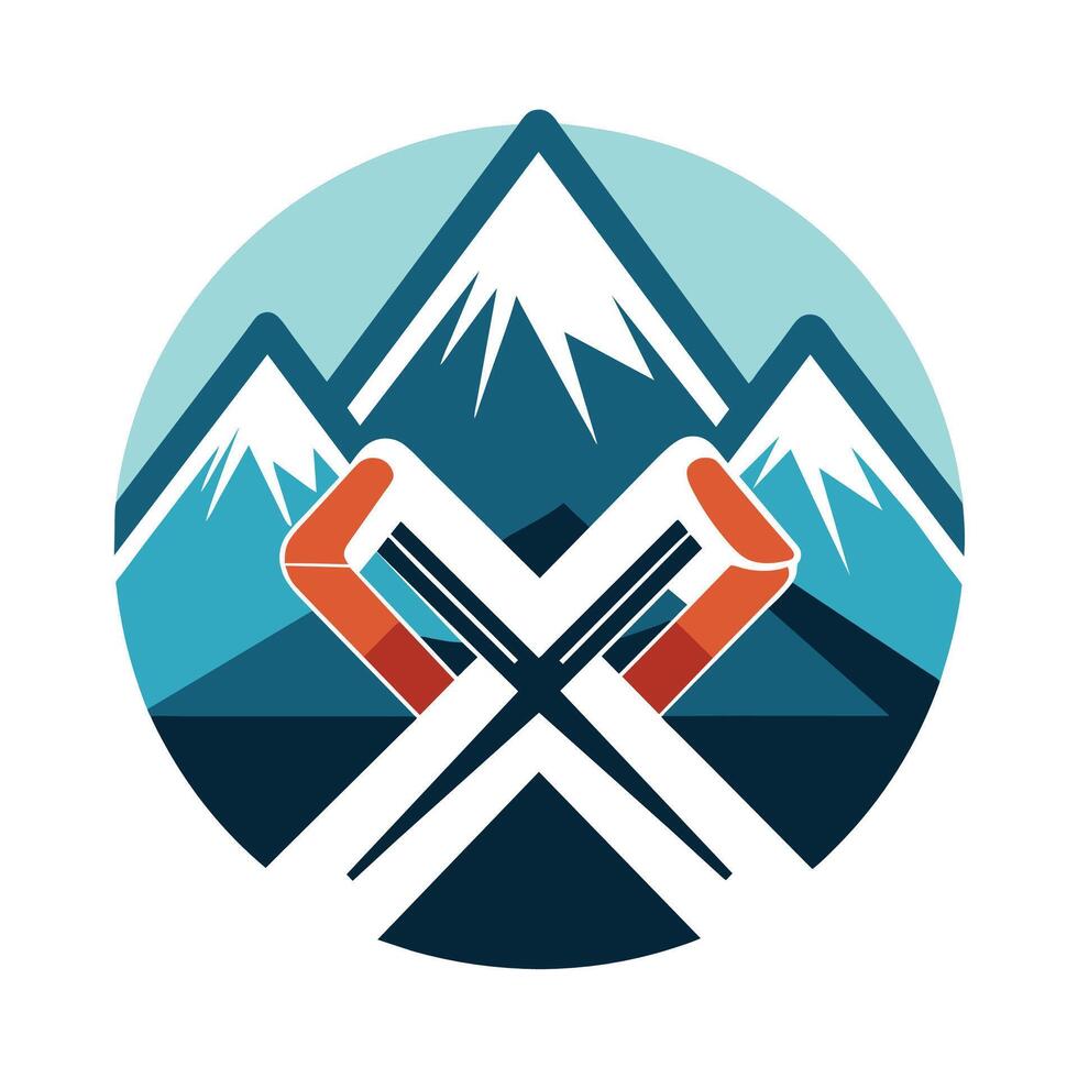 Logo design featuring skis on snow with mountains in the background, A simple design showcasing a pair of skis on a snowy slope vector