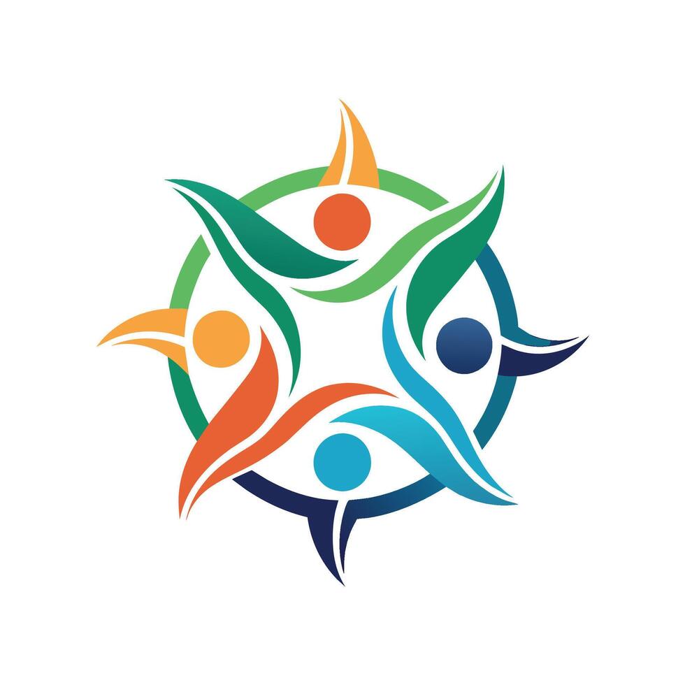 A group of individuals standing in a circle, interlocking hands, symbolizing unity and teamwork, A minimalist logo that evokes a sense of community and collaboration vector