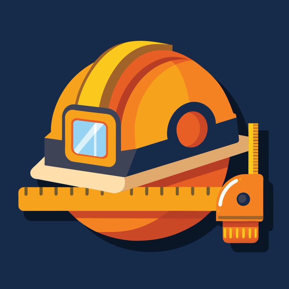 A construction helmet and a ruler are placed on a surface, symbolizing measurement and safety in construction projects, Construction helmet and measure tape design vector