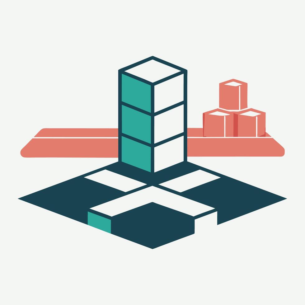 A building with a box structure placed on its rooftop, creating a unique architectural sight, A subtle, monochromatic depiction of a yoga mat and blocks vector