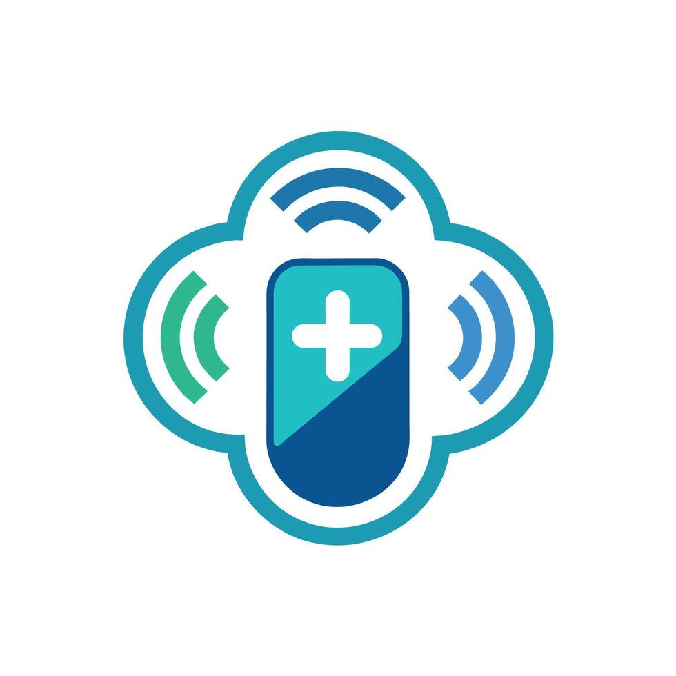A sleek blue and green phone displaying a cross emblem, designed for remote patient monitoring, Generate a sleek emblem for a remote patient monitoring tool Free Vector
